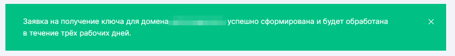 Готово, ваша заявка будет обработана в течение трёх рабочих дней. Вы получите секретный ключ на указанный email или телефон. После этого обратитесь к принимающему регистратору. Срок действия ключа для доменов .ru и .рф — 20 календарных дней.